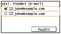 Pokud máte v kanceláři nainstalován server LDAP, můžete místo určení zadat pomocí informací na tomto serveru. Ze zařízení přejděte na server LDAP, vyhledejte příslušné informace o uživateli a zadejte je jako místo určení.