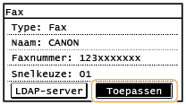 De gebruikersnaam en het faxnummer of e-mailadres die zijn geregistreerd op de LDAP-server van de geselecteerde gebruiker worden geregistreerd in het adresboek.