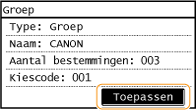 U kunt een groep ook als sneltoets opslaan. Selecteer <Sneltoets> om de groep als snelkeuzenummer op te slaan.