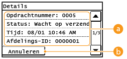 Hier ziet u het aantal te verzenden documenten, de instellingen en andere details. Als u alleen de details wilt controleren zonder de documenten te verzenden, drukt u op