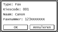<Ja>.Als u bij stap 2 Groepskiezen hebt opgegeven, wordt "XX bestemming(en)" weergegeven. Als u op <Aantal bestemmingen > tikt, ziet u hoeveel bestemmingen in de groep zijn opgeslagen.