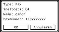tik op <Ja>.Als u bij stap 2 Groepskiezen hebt opgegeven, wordt "XX bestemming(en)" weergegeven. Als u op <Aantal bestemmingen > tikt, ziet u hoeveel bestemmingen in de groep zijn opgeslagen.