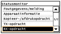 Schakel deze optie in als u ontvangstresultaatrapporten wilt afdrukken wanneer er documenten in het geheugen worden opgeslagen. Tik op <Aan> om rapporten af te drukken. U moet ook <RX-resultaatrapport> instellen op <Aan>.