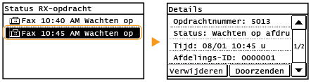 U kunt gedetailleerde gegevens bekijken van de documenten die in het geheugen zijn opgeslagen, zoals faxnummers van afzenders en het aantal verzonden pagina's, en vervolgens overbodige documenten verwijderen.