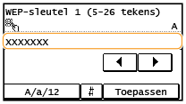 Voer de netwerksleutel in met de numerieke toetsen en tik op <Toepassen>. Tekst invoeren