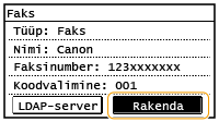 Valitud kasutaja LDAP-serveris salvestatud kasutajanimi ja faksinumber või e-postiaadress salvestatakse aadressiraamatusse.