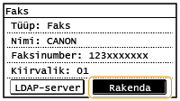 Valitud kasutaja LDAP-serveris salvestatud kasutajanimi ja faksinumber või e-postiaadress salvestatakse aadressiraamatusse.