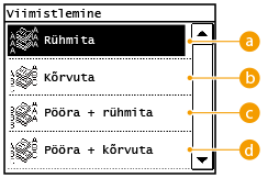Mitmeleheküljelistest dokumentidest mitu koopiat tehes saate koopiate järjekorra määramiseks valida <Rühm>, <Kõrvuta>, <Pööra + rühmita> või <Pööra + kõrvuta>. See funktsioon on kasulik koosolekute või esitluste jaotusmaterjalide ettevalmistamisel.