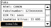 Kui soovite sihtkohad sihtkohaloendi kuvamiseta lihtsalt ja kiirelt kustutadaEnne seade <Sihtkoht> valimist 1. juhises võite määratud sihtkohtade vahetamiseks vajutada klahvi