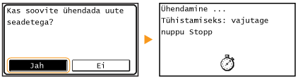 ![]() Kui on valitud <Avatud süsteem> Traadita side kohtvõrguga ühenduse loomisel ilmneb seadmes autentimistõrge, kui traadita side marsruuterile on määratud jagatud võtme autentimine. Sel juhul muudab seade automaatseks sätteks <Jagatud võti> ja proovib ühenduse taasluua. |