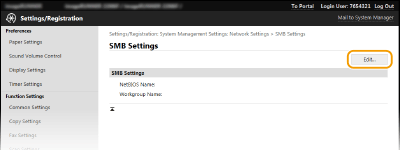 SMB (serveri sõnumiplokk) on protokoll, mida kasutatakse ressursside (nt failid ja printerid) ühiskasutusse andmiseks, kui võrgus on enam kui üks seade. Seade kasutab SMB-d skannitud dokumentide ühiskausta salvestamiseks. Sõltuvalt võrgust peate ehk määrama NetBIOS-i ja töörühma nime.