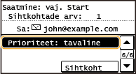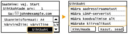 Kui määrate mitu sihtkohta, siis teine ning järgnevad peavad olema sisse kantud aadressiraamatusse. Koopia ja salakoopia puhul saate määrata ainult aadressiraamatusse sisse antud sihtkohti. Aadressiraamatu kasutamiseks peate vajalikud registreerimisprotseduurid eelnevalt teostama.