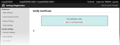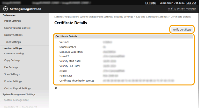 Klõpsake võtmepaari verifitseerimiseks valikut [Key and Certificate Settings] või CA sertifikaadi verifitseerimiseks valikut [CA Certificate Settings].