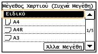Μπορείτε να αποθηκεύσετε ρυθμίσεις για ένα χαρτί ειδικού μεγέθους και τύπου που τοποθετείτε στον δίσκο πολλαπλών χρήσεων.