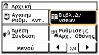 <Ρυθμίσεις Φαξ>. Ωστόσο, οι ρυθμίσεις που κάνετε στο <Βιβλ.Δ/νσεων> εφαρμόζονται στις λεπτομερείς ρυθμίσεις των προορισμών που έχετε καταχωρήσει στο Βιβλίο διευθύνσεων. |