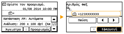 Πατήστε <Παύση> για να εισάγεται μια παύση στο τέλος του αριθμού φαξ, όταν είναι απαραίτητο.