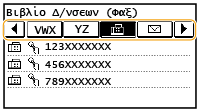 Εμφανίζει όλους τους προορισμούς που είναι αποθηκευμένοι στο βιβλίο διευθύνσεων. Για τις ενδείξεις δίπλα στους προορισμούς, δείτε τις επεξηγήσεις παρακάτω.