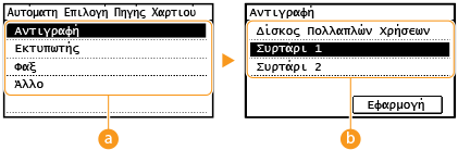 Επιλέξτε την πηγή τροφοδοσίας χαρτιού