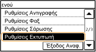Ορίστε τον αριθμό των γραμμών που θα εκτυπώνονται ανά σελίδα, από 5 έως 128. Αυτή η ρύθμιση αλλάζει αυτόματα ανάλογα με τις επιλογές που έχουν οριστεί στις ρυθμίσεις <Προεπιλ.ΜέγεθοςΧαρτιού> και <Προσανατολισμός>.