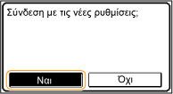 Εάν εμφανιστεί το μήνυμα <Ενεργοποίηση του ασύρματου LAN;>, πατήστε <Ναι>.
