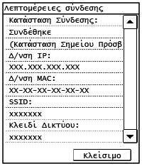 <Πληρ. Σύνδ.> και επιλέξτε τη ρύθμιση που θέλετε να δείτε.