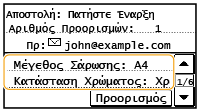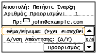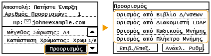 Για αποστολή email απευθείας από τη συσκευή, μπορείτε να ολοκληρώσετε τις προετοιμασίες, όπως τον προσδιορισμό των ρυθμίσεων διακομιστή αλληλογραφίας, εκ των προτέρων. Διαμόρφωση ρυθμίσεων σάρωσης (Αποστολή e-mail)
