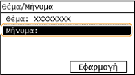 Εισάγετε το θέμα χρησιμοποιώντας τα αριθμητικά πλήκτρα και πατήστε <Εφαρμογή>.
