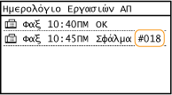 Εάν η εκτύπωση δεν ολοκληρωθεί με επιτυχία, δεν μπορείτε να στείλετε ή να λάβετε ένα φαξ ή ένα σαρωμένο έγγραφο ή παρουσιαστεί κάποιο άλλο σφάλμα, αυτό το σφάλμα εμφανίζεται σε μια αναφορά ή ένα μήνυμα στην οθόνη <Έλεγχος Κατάστασης> ως τριψήφιος αριθμός (κωδικός σφάλματος). Ελέγξτε τα ακόλουθα για να βρείτε αιτίες και λύσεις για κάθε κωδικό σφάλματος. Για να μάθετε τον τρόπο εκτύπωσης μιας αναφοράς σφάλματος και των πληροφοριών στην αναφορά, ανατρέξτε στην ενότητα