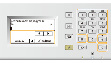 Ha a beírt szöveg típusa <a> vagy <a>, a beírható szimbólumok képernyőn való megjelenítéséhez nyomja meg a