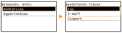 <Faxbeállítások> lehetőséggel is elvégezhető. Mindazonáltal a <Címjegyzék> adataiból végzett beállítások a Címjegyzékbe bejegyzett rendeltetési helyek részletes beállításaihoz vannak engedélyezve. |
