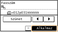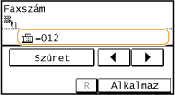 Érintse meg a <Szünet> lehetőséget, ha szükség esetén szünetet szeretne beszúrni a faxszám végére.