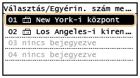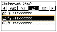 A címjegyzékbe bejegyzett összes rendeltetési helyet megjeleníti. A rendeltetési helyek melletti jelölések jelentése az alábbiakban olvasható.