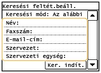 A címek között személynevek, faxszámok, e-mail címek, szervezeti nevek és szervezeti egységek nevei szerint lehet keresni.