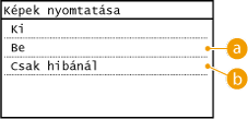Válassza a <Be> vagy a <Csak hibánál> lehetőséget