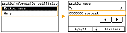Adja meg a készüléket azonosító nevet és telepítési helyet legfeljebb 32 alfanumerikus karakterrel.