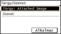 Írja be a tárgyat a számbillentyűkkel, és érintse meg az <Alkalmaz> gombot.