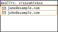 Ha a <Naplóból történő újraküldés korlátozása> beállítás értéke <Be>, akkor nem használható ez a funkció. Korábban használt rendeltetési helyek használatának tiltása