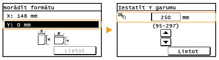 Ievadiet malas <Y> garumu un pieskarieties <Lietot>.
