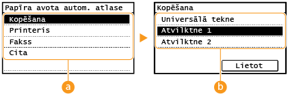 ). Automātiskā atvilktnes izvēle vienmēr ir iespējota drukāšanai no papīra padeves, izmantojot universālo tekni.