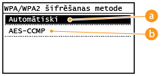 <AES-CCMP>Iestata šifrēšanas metodi AES-CCMP.
