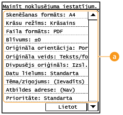 Izvēlieties vienumu, kas ir jāiestata, un mainiet noklusējuma vērtību.