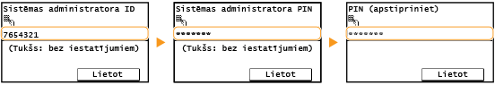 Iestatījumu konfigurēšana, izmantojot Remote UI (Attālais lietotāja interfeiss)Atveriet utilītu Remote UI (Attālais lietotāja interfeiss) un piesakieties sistēmas pārvaldnieka režīmā. Noklikšķiniet uz [Settings/Registration]