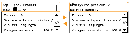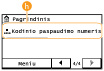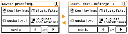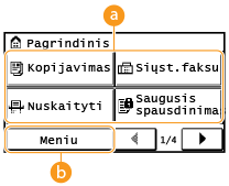 Ekranas <Pagrindinis> rodomas, kai norite pradėti operacijas arba atidaryti ekranus parametrams nustatyti. Taip pat čia galite matyti užduočių eigą ir pranešimus. Norėdami juo naudotis, palieskite ekraną.