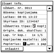 Rodo dabartinę pažymėto elemento būseną. Toliau kaip pavyzdys pateiktas ekranas <Kopij. /spausd. užduot. būsena>.