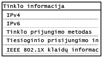 Rodomi tinklo parametrai, pvz., aparato IP adresai, ir būsena, pvz., belaidžio LAN ryšio kokybė.