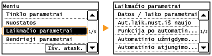 Jei norite keisti ekraną, kuris automatiškai rodomas, kai aparatas nurodytą laiko tarpą neveikia: