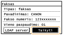 Pasirinkto vartotojo vardas ir fakso numeris arba LDAP serveryje užregistruotas el. pašto adresas užregistruojami adresų knygelėje.