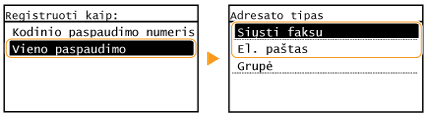 <Fakso parametrai> galite nustatyti išsamius adresatų parametrus. Tačiau jei parametrai nustatyti dalyje <Adresų knyga>, išsamius parametrus galima nustatyti tik adresatų, kurie įregistruoti adresų knygelėje. |