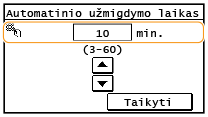 nustatykite laiko tarpą iki aparato automatinio persijungimo į budėjimo režimą
