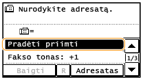 Skamba priimamo ryšio signalas. Pakelkite ragelį. Išgirdę signalą, bakstelėkite <Pradėti priimti>, kad priimtumėte faksogramas.